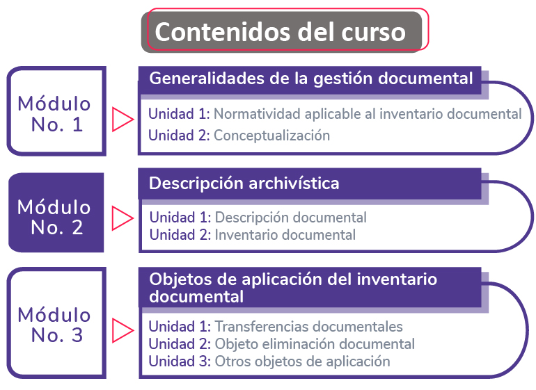 Durante el desarrollo de este curso se presentará a los participantes las herramientas conceptuales y metodológicas para la elaboración del inventario documental, y la realización de las transferencias documentales, de acuerdo con la normatividad archivística; haciendo énfasis en la importancia del proceso de descripción, la normatividad vigente, y los instrumentos archivísticos que componen este proceso.